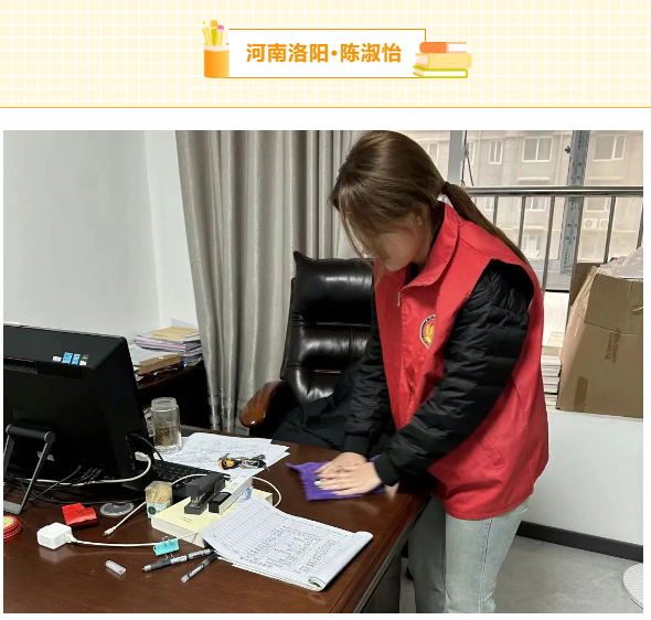 社区卫生大扫除时,我和伙伴们干劲十足。来到办公室区域,大家分工明确。我和几个伙伴负责打扫办公室内部。先将办公桌上的文件资料分类整理,把用过的纸张整齐叠放,归置好各类办公用品。接着,用湿抹布仔细擦拭桌面,不放过任何一处污渍和灰尘,擦去电脑、打印机表面的浮尘,让办公设备焕然一新。随后,拿起扫帚清扫地面,将角落里的灰尘和杂物都扫到一起,再用拖把反复拖地,直到地面光亮如镜,每走一步都能映出人影。