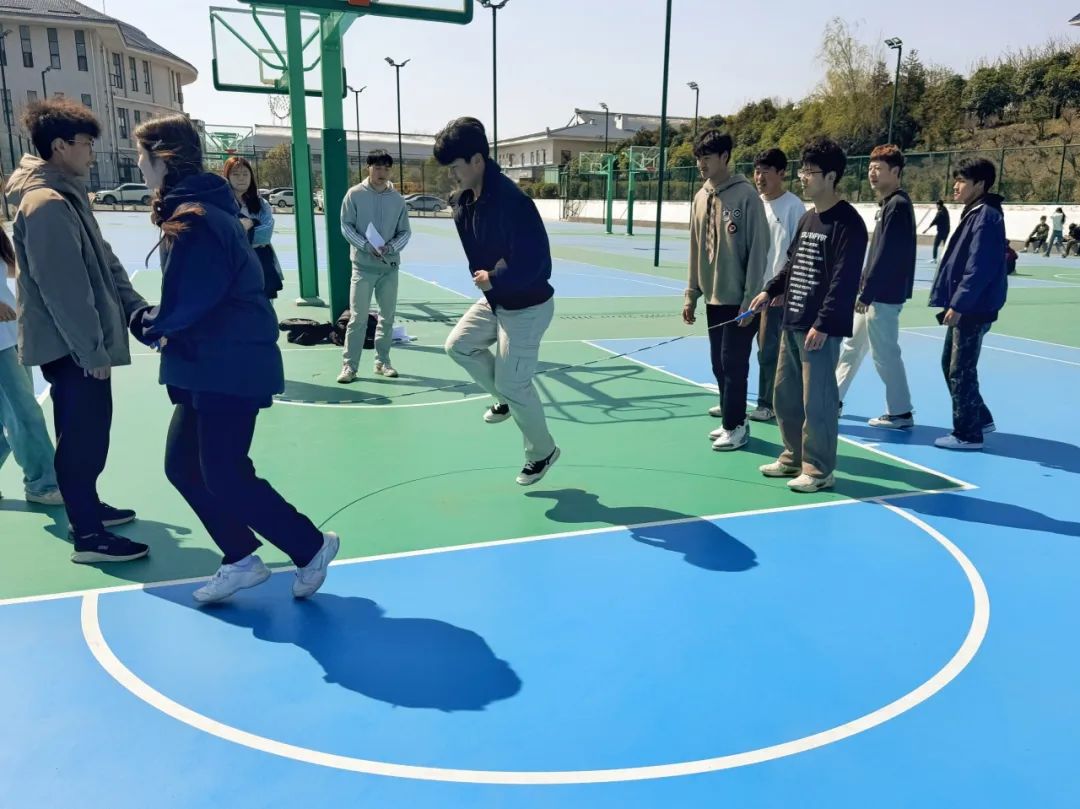 1、在篮球场或空地内,挑选两位上肢、腰腹力量及协调性较好,方向感较好的队员作为摇绳者,其余队员作为跳绳者。