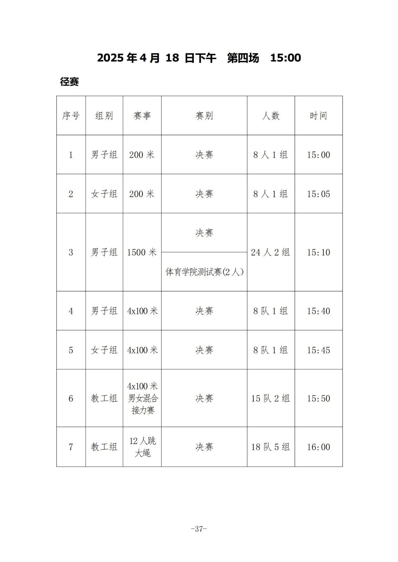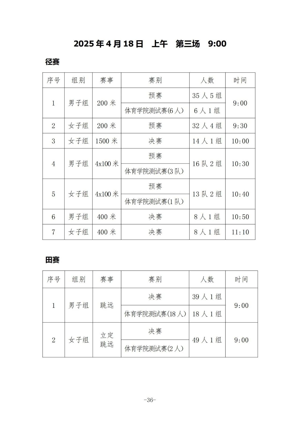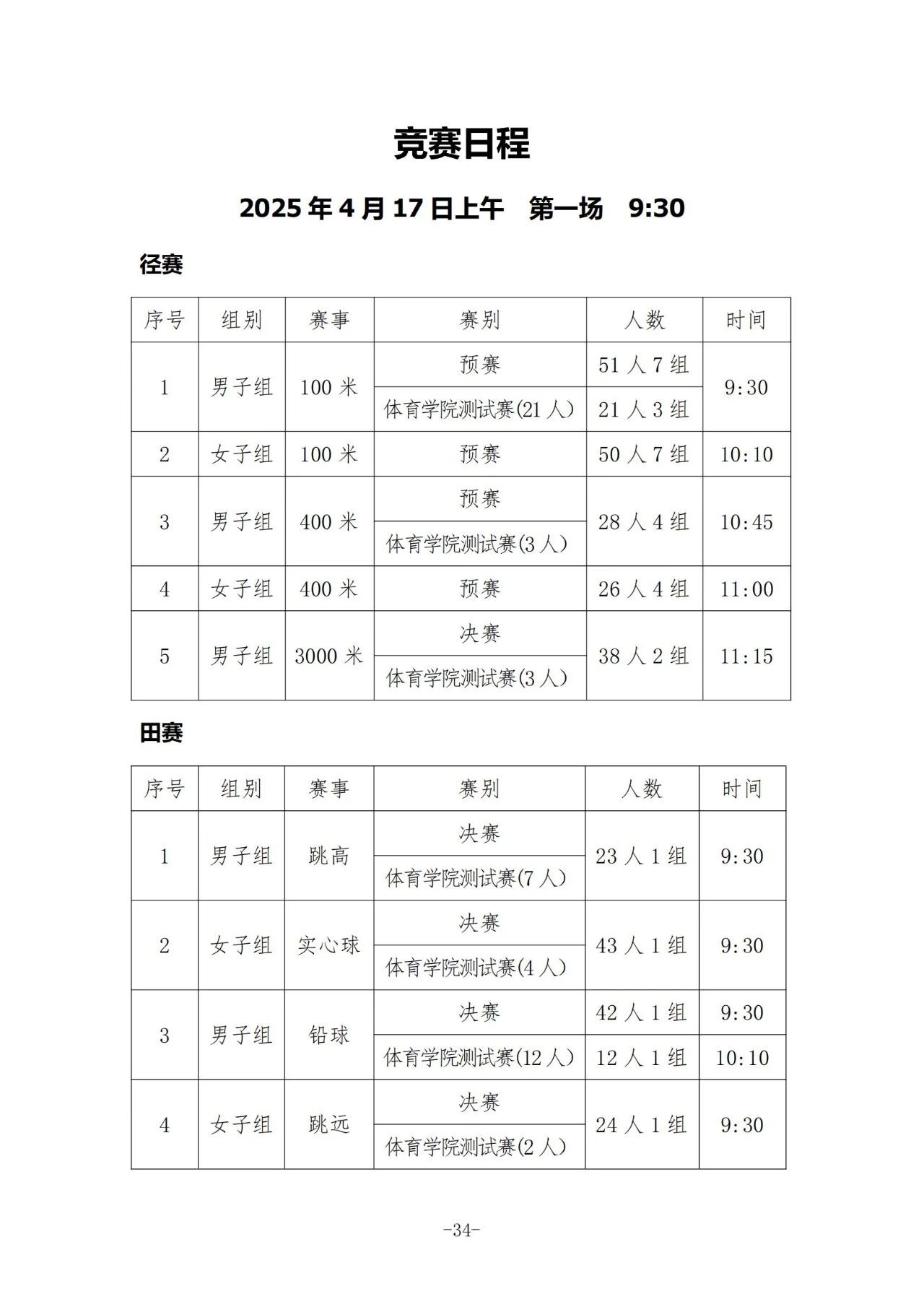 像跑步、跳远等各类项目及细分组别