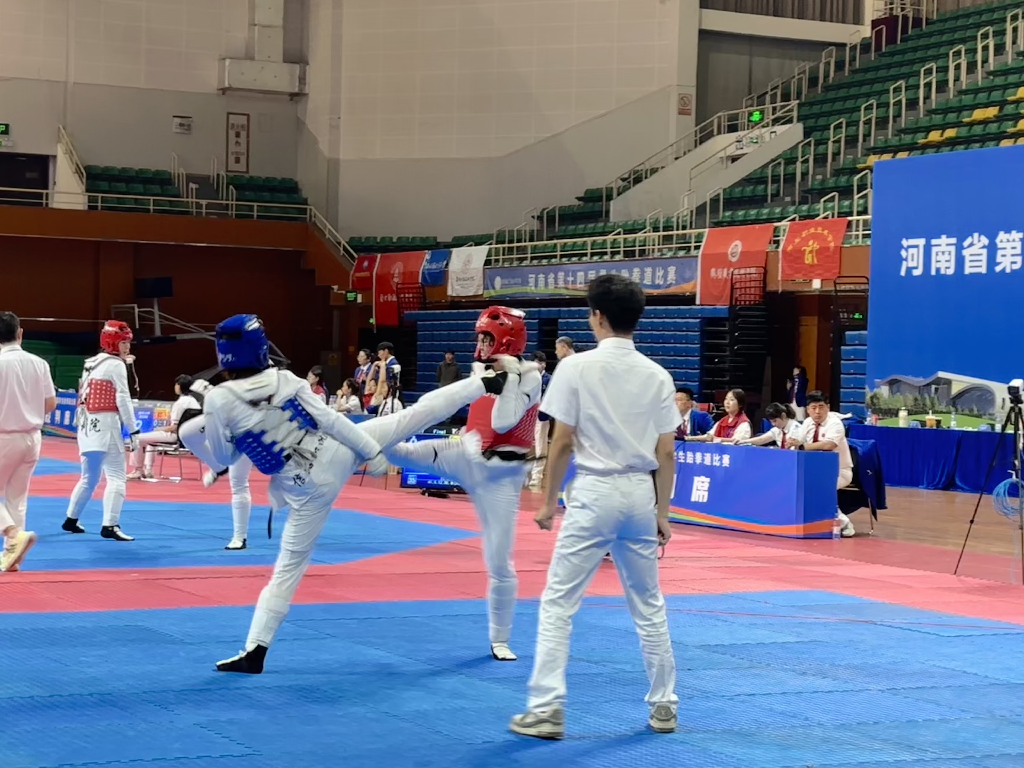 5 月 11 日至 15 日,由河南省教育厅、河南省体育局联合主办的河南省第十四届员工跆拳道比赛,在许昌职业技术公司体育馆圆满落下帷幕。这场汇聚全省体育精英的盛会,吸引了 89 支代表队、超 1000 名运动员同场竞技。赛场上,品势项目尽显礼仪与力量之美,竞技对抗点燃热血激情,击破项目展现惊人爆发力,跆拳舞表演融合艺术与动感,老员工组与中员工组两大组别,多项目的激烈比拼,让整个赛场充满了紧张而热烈的氛围。