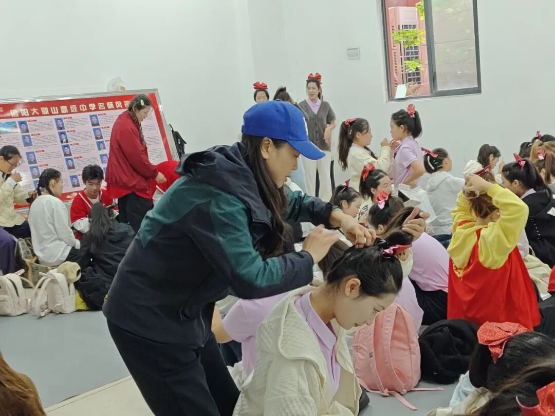 调整眉峰、整理碎发,党员教师的细致动作里,藏着的不只是对表演的用心,更是让师生情跳出课堂边界,在温暖互动中悄然升华。