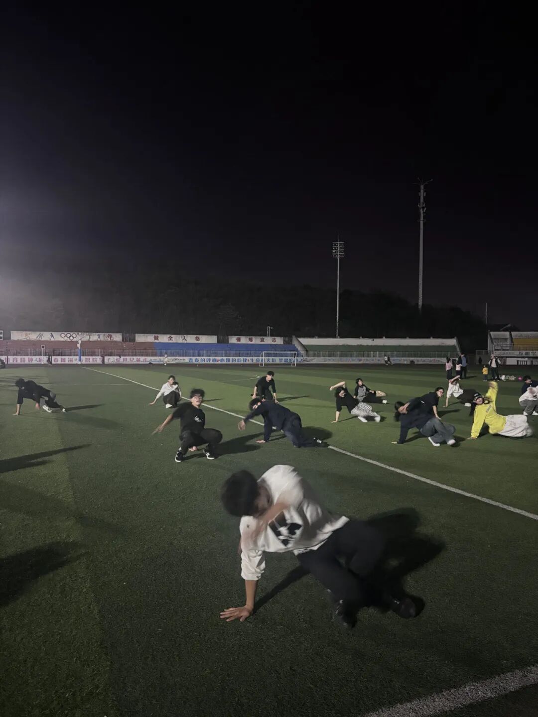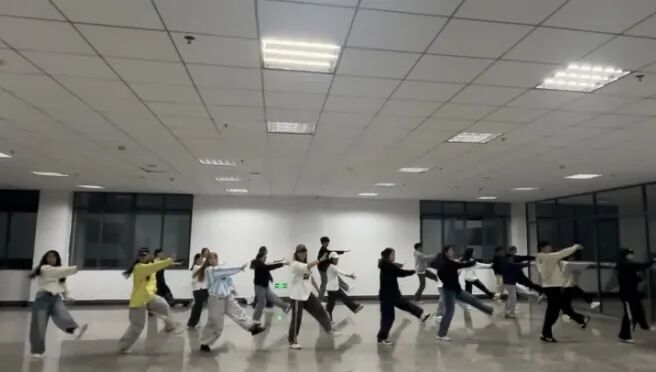 没人知道,这块“三连冠”的奖牌有多沉。备战的日子里,练功房就是我们的第二个课堂。每天上完专业课,我们便马不停蹄地赶来集合,从傍晚练到深夜,是我们的常态。Hip Hop的节奏要卡到分毫不差,我们就把音乐拆分成小节,逐拍练习;Breaking的力量动作难度大,我们就互相保护、反复冲刺,哪怕膝盖撞出淤青,手臂练到酸痛也不放弃;集体齐舞的队形衔接要丝滑,我们就对着镜子一个个调整位置,记住每一个队友的节奏与步伐。训练累到极致时,有人会靠在墙边喘口气,但只要音乐再次响起,大家又会立刻精神抖擞地站回原位。因为我们知道,我们不是一个人在战斗,身后是整个团队的信任与期待。