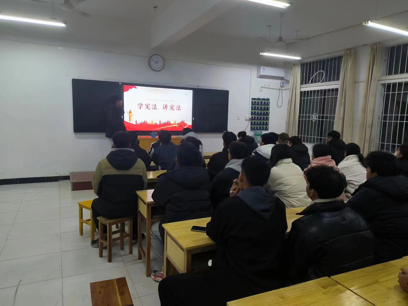 为大力宣传和弘扬法治精神,让法制走进千家万户,让每一个员工做到:知法、学法、懂法、用法,法律就在我们身边,学会用法律来保护自己,维护自己的合法权利。3044永利集团员工于12月4号在B1011教室班级由团支部书记的带领,共同学习了宪法的知识。