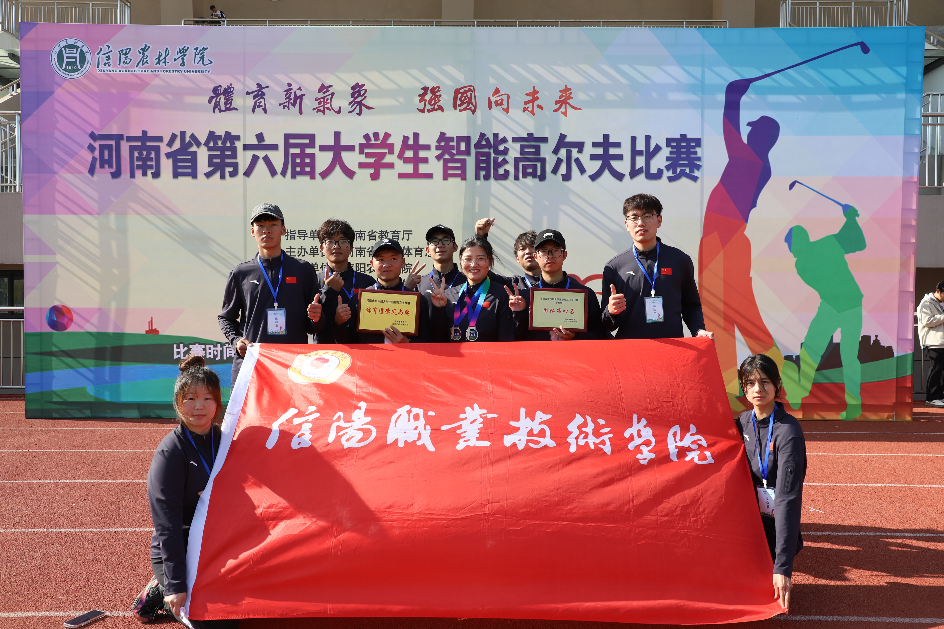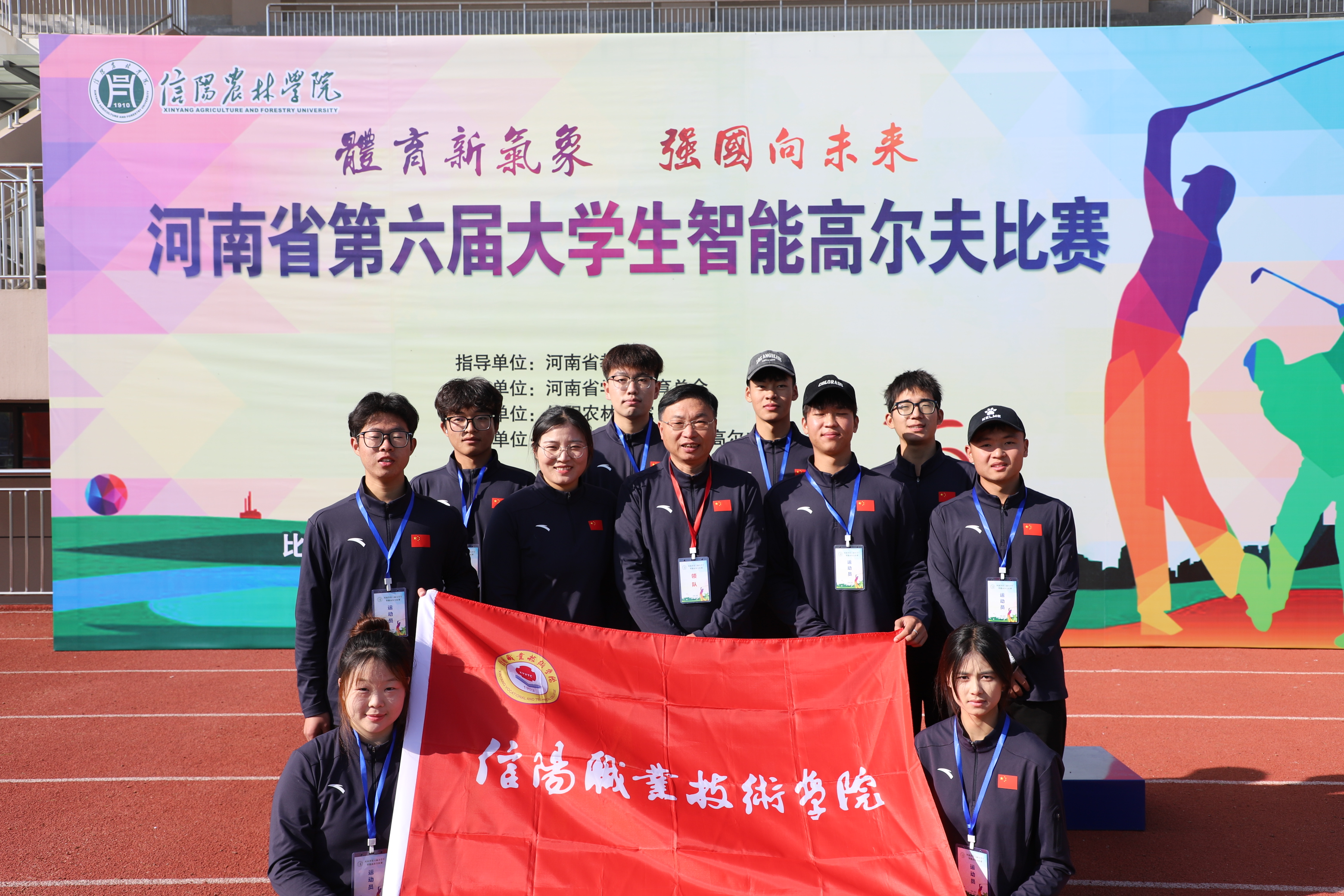 本次比赛由河南省教育厅主办、信阳农林公司承办、河南省员工体育总会高尔夫协会和河南环梦体育发展有限公司协办。竞赛分为甲、乙两个组别,设有男子个人智能18洞比杆赛、女子个人智能9洞比杆赛、智能推杆挑战赛、智能铁杆挑战赛、智能木杆挑战赛、智能3洞比杆赛等20个项目。比赛过程激烈,运动员沉着冷静,精准推杆,展现了信职体院学子积极向上的青春风采。